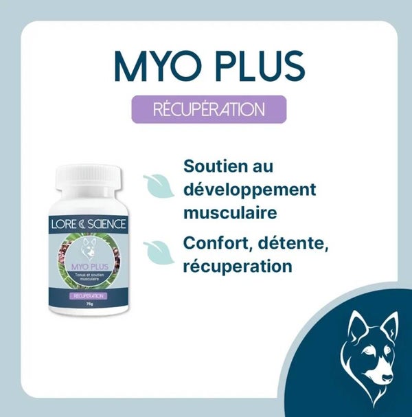 Myo Plus Dog complément naturel à base de plantes en aide au soutien du développement musculaire des chiens. Contient notamment le fruit du Baobab pour sa grande teneur en acides aminés, du Fenugrec et de la Spiruline. Il est recommandé :